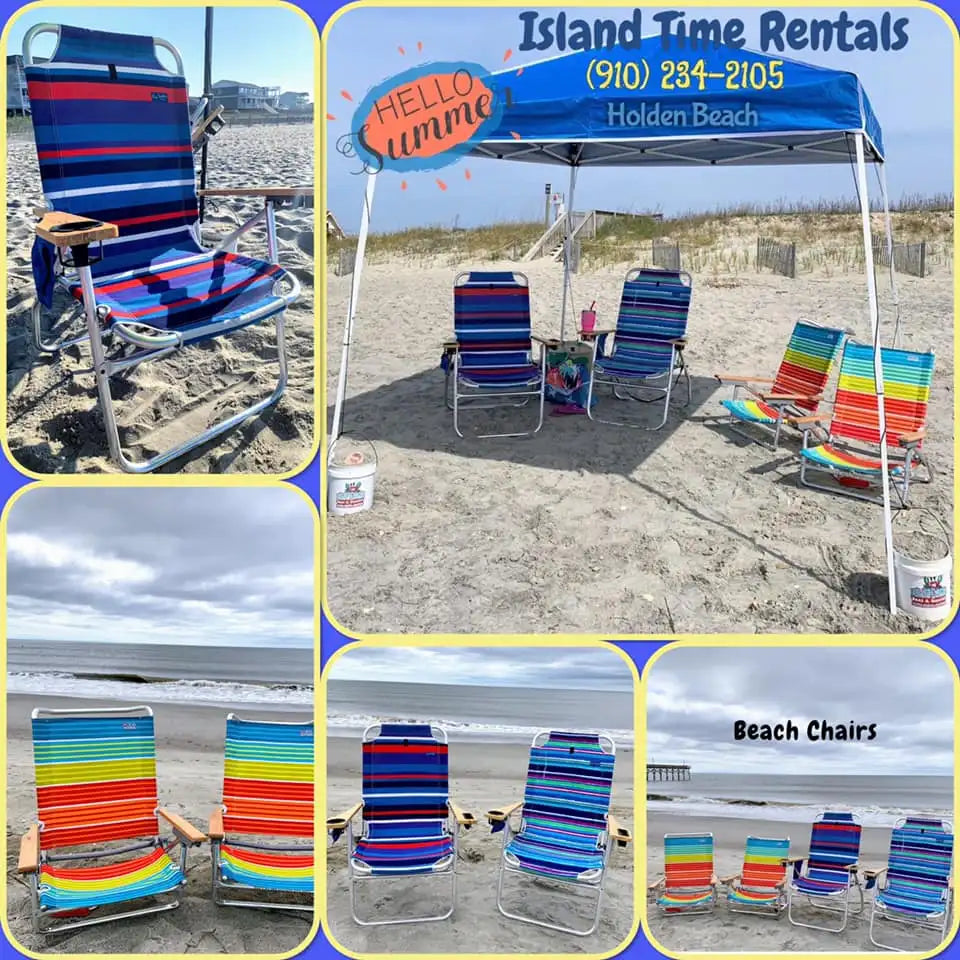 At Island Time Rentals, we offer a complete selection of beach gear delivered right to your spot on Holden Beach — including: